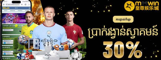 1. ប្រាក់រង្វាន់ស្វាគមន៍ 30% សម្រាប់ភ្នាល់កីឡា